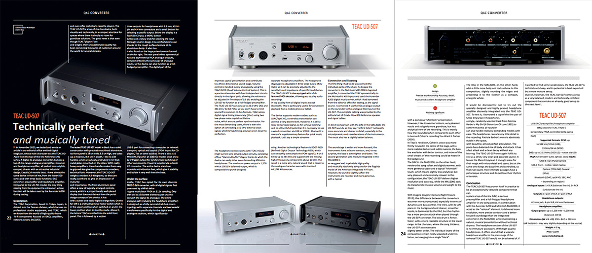 「… TEAC UD-507は非常にバランスの取れた、現代的で技術力の高いコンポーネントで、既に素晴らしいサウンドのシステムを次のレベルへと引き上げることができる。」